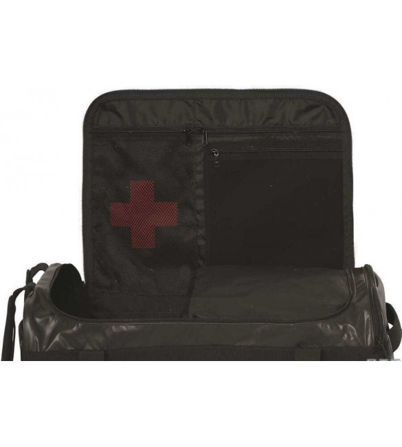 Duffel in tessuto impermeabile con ampio scomparto principale a chiusura zip, tasca interna imbottita per PC portatile, scomparto per kit di pronto soccorso, scomparto esterno per scarpe, maniglie con tracolla imbottita e targhetta porta documento d'identificazione.
