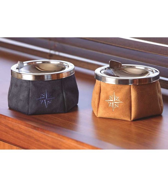 Posacenere appesantito antivento in Acciaio Inox e simil-scamosciato con base antiscivolo