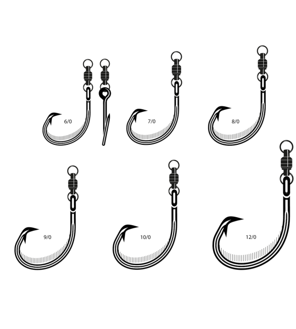 Circle è un'amo destinato alla pesca di grandi tonni e squali Pesci Spada, la sua forma circolare consente allamate sicure senza sorprese, super resistente e super leggero è fornito di girella con cuscinetti a sfera.