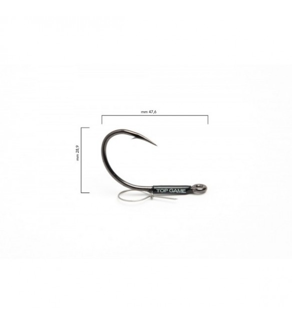 Amo di forma J, offset, Xstrong, leggerissimo,con clip Top Game per l'innesco dell'esca viva.