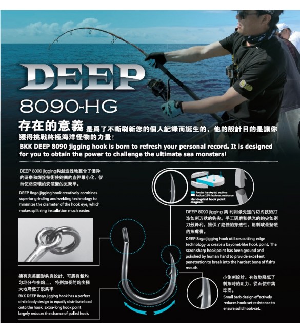 Il gancio per jigging BKK DEEP 8090 -HG combina i materiali più pregiati disponibili e tecnologia di trattamento termico allo stato dell'arte per ottenere un gancio innovativo