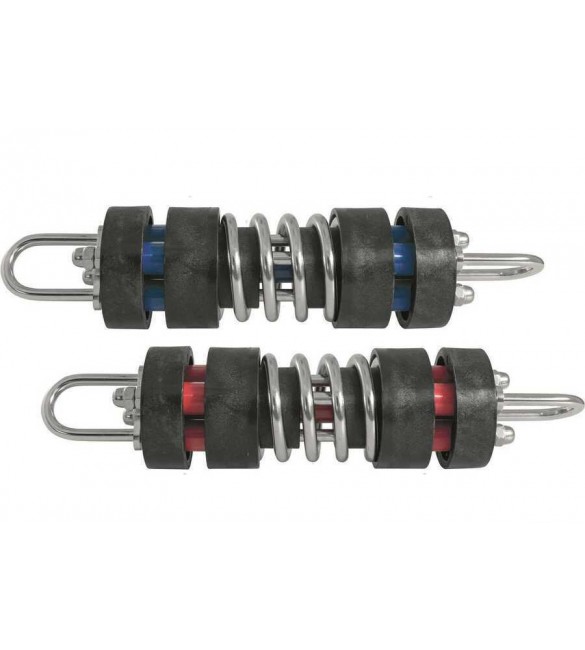 3- Gli elastomeri laterali intervengono in caso di sollecitazione forte La molla centrale, in Acciaio Inox ad altissime prestazioni, ha la funzione di assorbire la piccola e media risacca nei porti per un maggiore comfort e silenziosità.