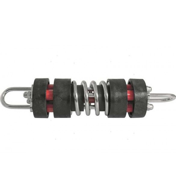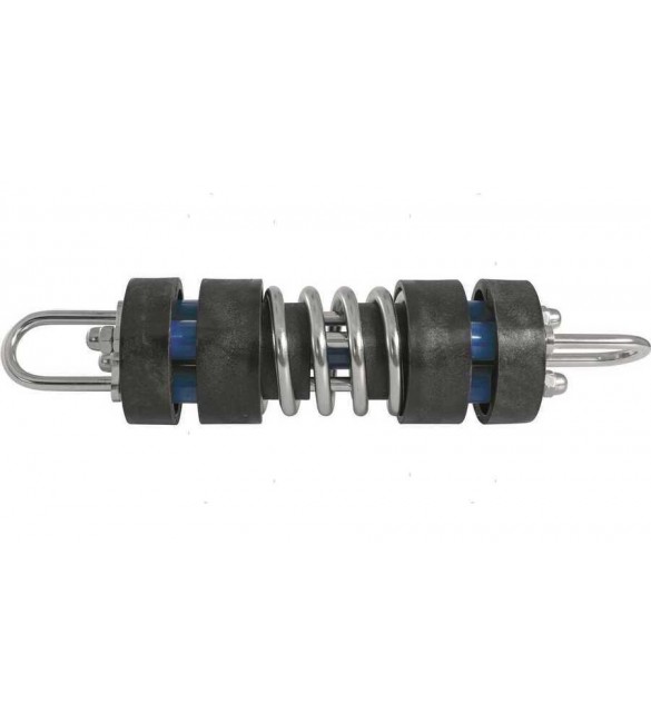 3- Gli elastomeri laterali intervengono in caso di sollecitazione forte La molla centrale, in Acciaio Inox ad altissime prestazioni, ha la funzione di assorbire la piccola e media risacca nei porti per un maggiore comfort e silenziosità.