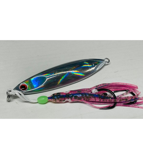 L’effetto cromatico luccicante del jig in metallo A RIGHE GLOW si unisce al movimento sinuoso del polipo in plastica diventando irresistibile per molte specie di pesci che fino a pochi anni fa si catturavano solo con esche naturali.