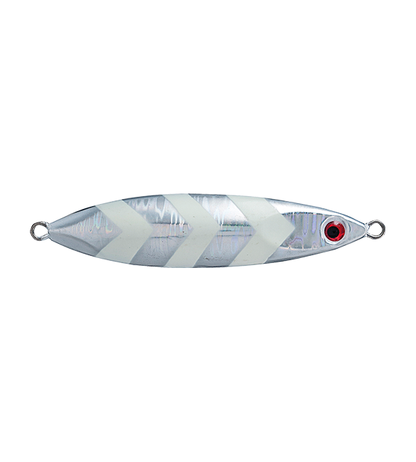 L’effetto cromatico luccicante del jig in metallo A RIGHE GLOW si unisce al movimento sinuoso del polipo in plastica diventando irresistibile per molte specie di pesci che fino a pochi anni fa si catturavano solo con esche naturali.