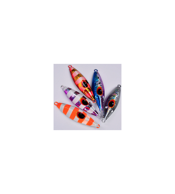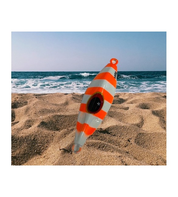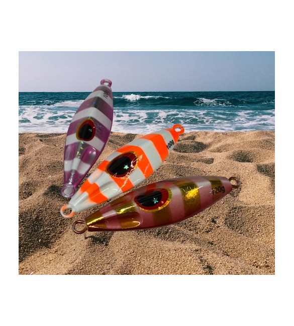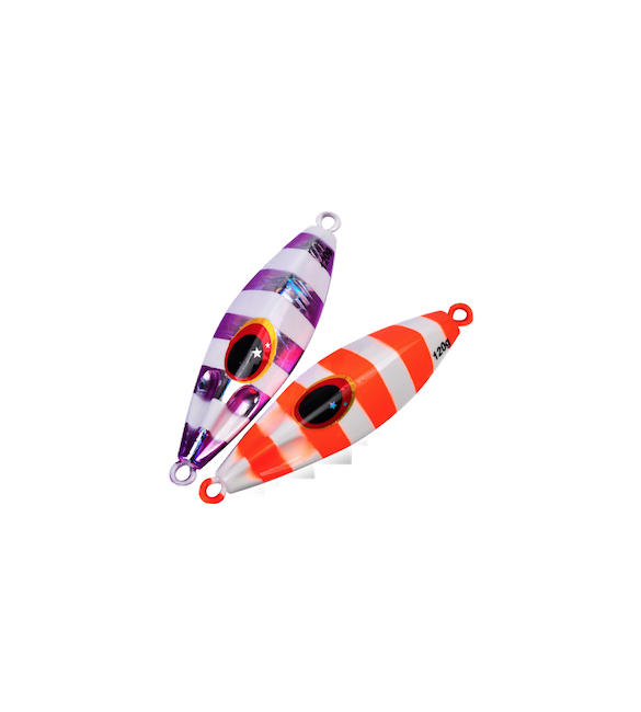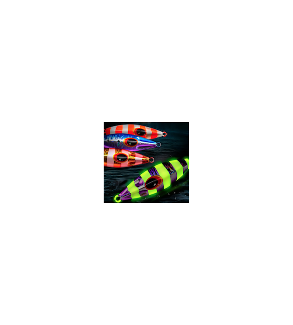 L’effetto cromatico luccicante del jig in metallo A RIGHE GLOW si unisce al movimento sinuoso del polipo in plastica diventando irresistibile per molte specie di pesci che fino a pochi anni fa si catturavano solo con esche naturali.