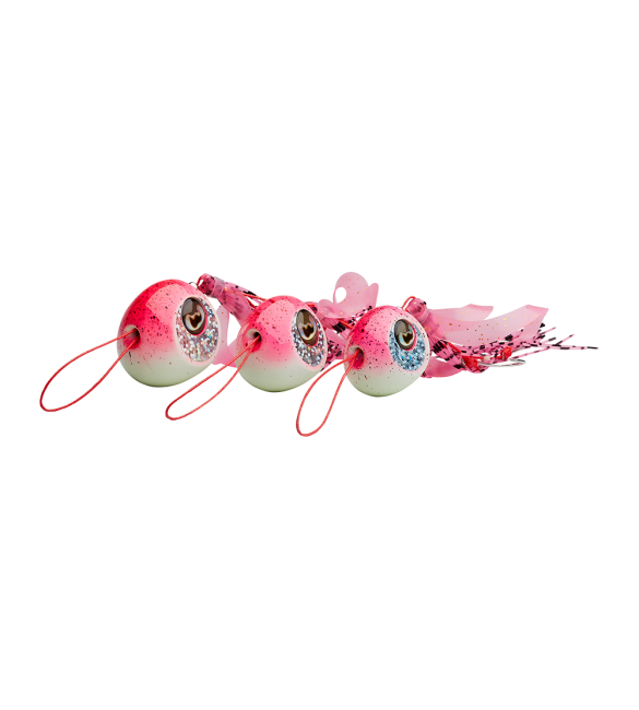 L’effetto cromatico luccicante del jig in metallo A RIGHE GLOW si unisce al movimento sinuoso del polipo in plastica diventando irresistibile per molte specie di pesci che fino a pochi anni fa si catturavano solo con esche naturali.