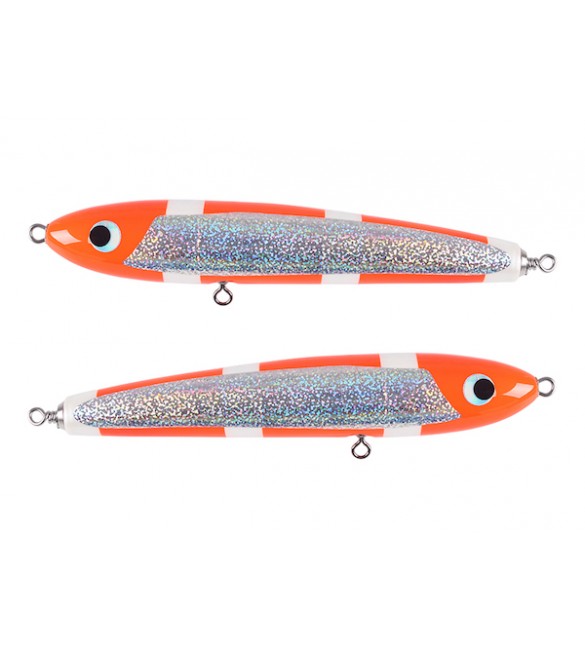 Stick Bait galleggiante nato per lavorare ad ogni velocità, dal recupero classico a strappate veloci ad un lento ondeggiare in superficie micidiale per richiamare a galla i predatori del reef come cernie, cubere, GT e altri …