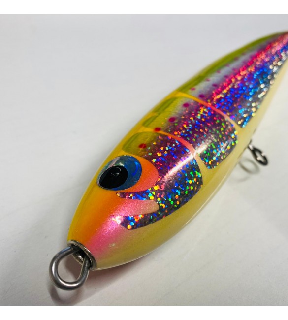 Stick Bait galleggiante nato per lavorare ad ogni velocità, dal recupero classico a strappate veloci ad un lento ondeggiare in superficie micidiale per richiamare a galla i predatori del reef come cernie, cubere, GT e altri …