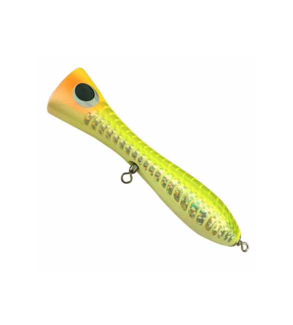 Popper Tropico Modello Dumbbell Trevally Col Nemo Orange GR 140 cm 22 supercatturante, dedicato alla ricerca dei pesci più grossi, attirati dal forte rumore prodotto dalla bocca ampia e profonda; l’angolo di essa fa in modo che sia estremamente facile da lavorare anche in distanza, un piccolo tocco della canna e l’esca “esplode” pur restando stabile grazie ai rings della coda che ne aumentano anche la turbolenza.