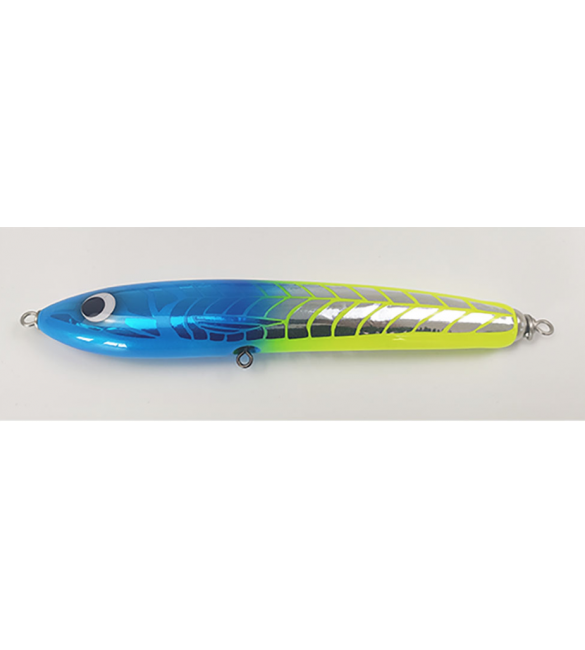 Stick Bait galleggiante nato per lavorare ad ogni velocità, dal recupero classico a strappate veloci ad un lento ondeggiare in superficie micidiale per richiamare a galla i predatori del reef come cernie, cubere, GT e altri …