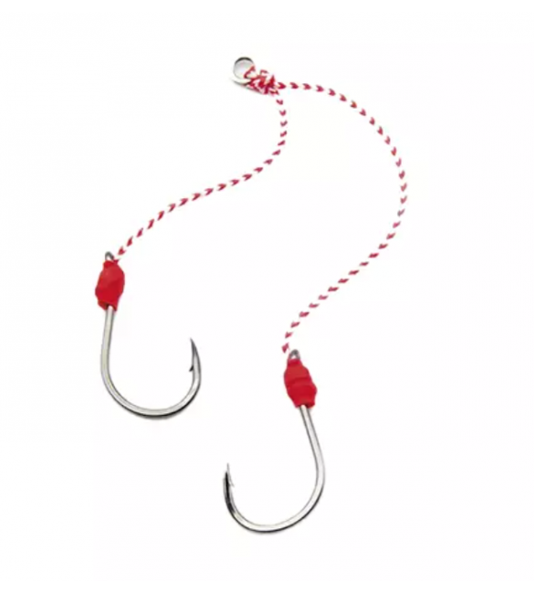 1 doppio assemblaggio di 3 ami BKK #8 (HIGH CARBON) , set con treccia da 0,6 mm e anello saldato in acciaio inossidabile.