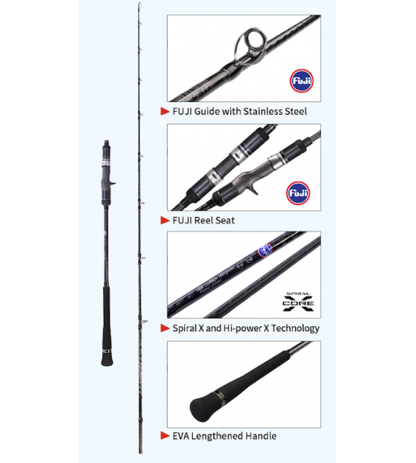 Progettato con i migliori materiali in carbonio Toray e anelli Fuji, ultra leggero e resistente.