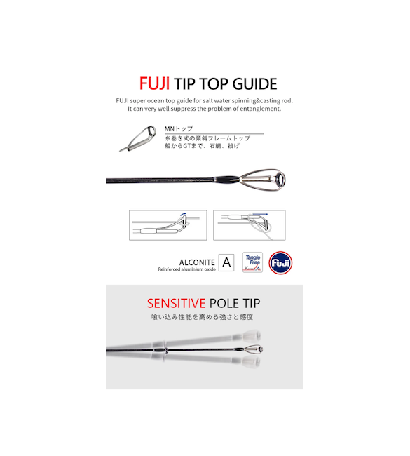 Progettato con i migliori materiali in carbonio Toray e anelli Fuji, ultra leggero e resistente.