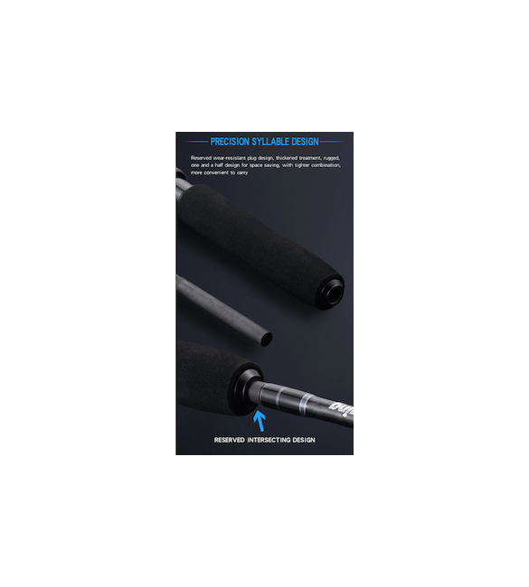 Progettato con i migliori materiali in carbonio Toray e anelli Fuji, ultra leggero e resistente.
