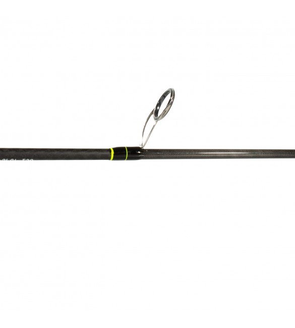 Portamollino Trigger progettato per la pesca con mulinelli a bobina fissa, realizzato in grafite e anelli in acciaio inox con protezioni.