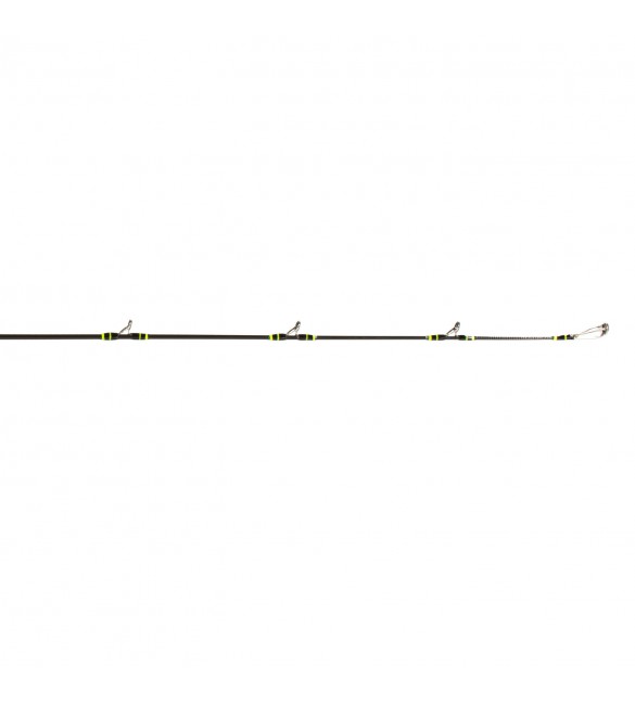 Portamollino Trigger progettato per la pesca con mulinelli a bobina fissa, realizzato in grafite e anelli in acciaio inox con protezioni.