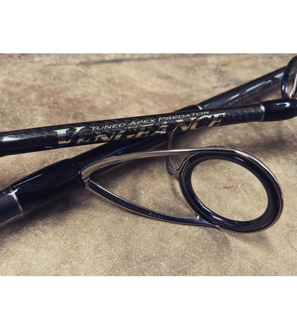 La serie Vengeance presenta le guide in carburo di silicio KW in acciaio inossidabile giapponese Fuji di altissima qualità e il porta mulinello Fuji DPS con dadi di bloccaggio personalizzati progettati specificamente per Oceans Legacy.