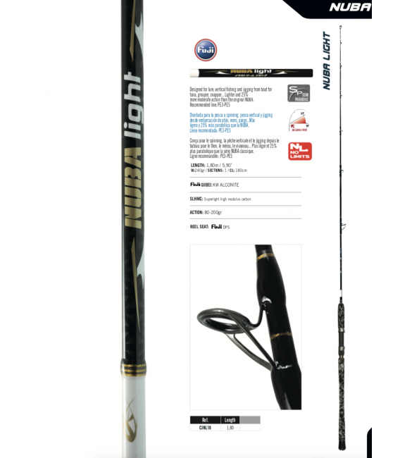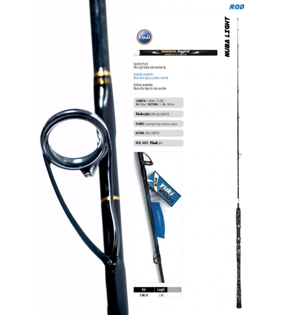 Canna monopezzo ad azione semi-parabolica studiata per la pesca di tonni, dentici, cernie e altri pesci pelagici con jig ed esche dalla barca.