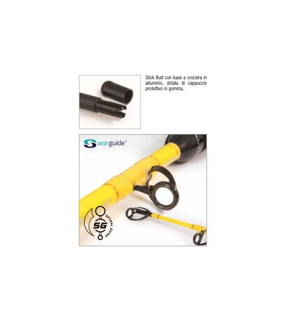 Gli anelli sono Sea Guide Heavy Duty, con telaio in acciaio inox e passante in SiC, fissati da doppie legature secondo il concetto Acid Spiral Wrapping, che impedisce alla lenza di entrare in contatto con il fusto della canna quando esso è piegato drasticamente.