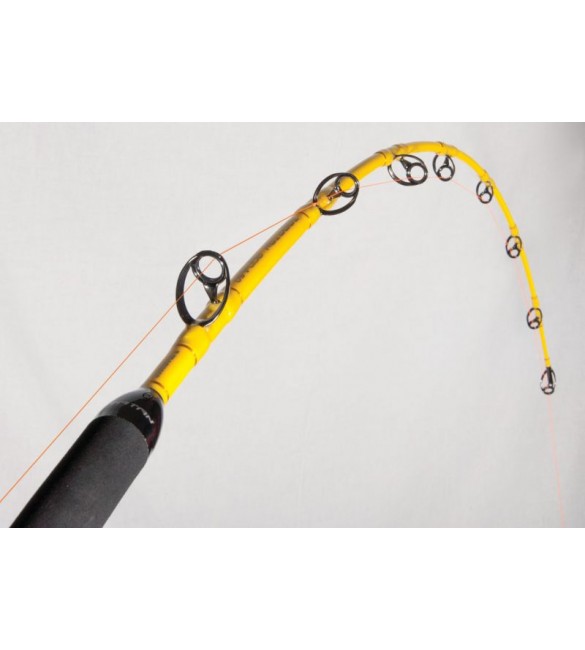 Il Fusto grezzo è realizzato in monopezzo di E-Glass per una resistenza totale, garantendo flessioni estreme in combattimento e presentando un deciso movimento di rientro del fusto durante il pompaggio e il combattimento del pesce.