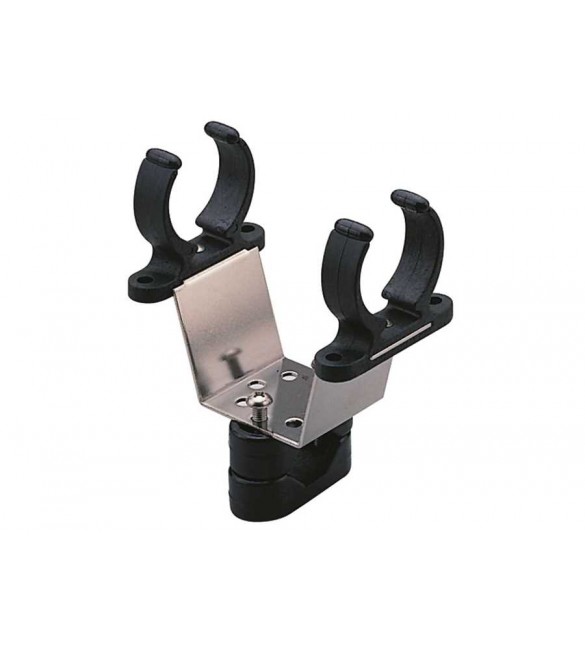 Supporto clips per boetta con attacco orientabile in Acciaio Inox a parete e a tubo da ø 22<>25mm.