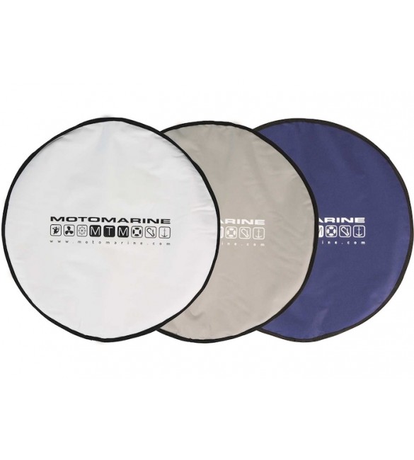 Sacca per salvagenti anulari in tessuto di poliestere imbottito con strato interno di PVC, cinghie di fissaggio regolabili e apertura a cerniera.