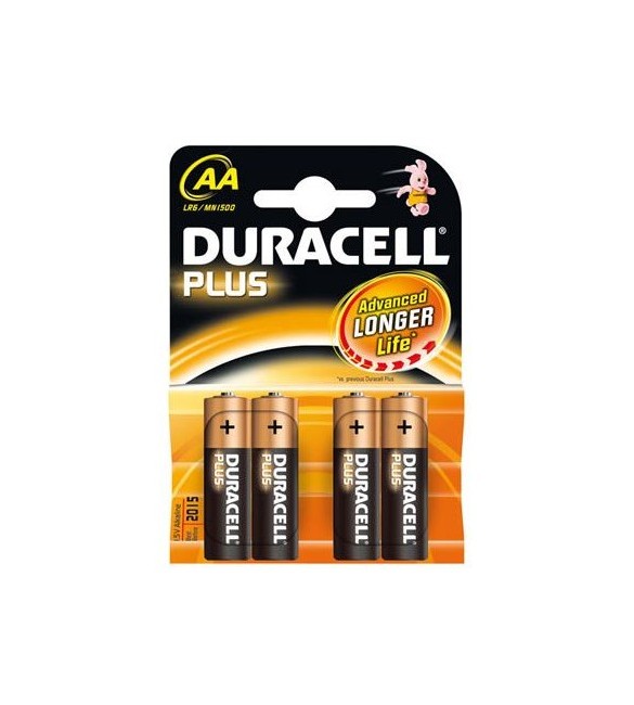 Batterie Duracell Plus Power AA (Stilo) in confezione da 4 pezzi.