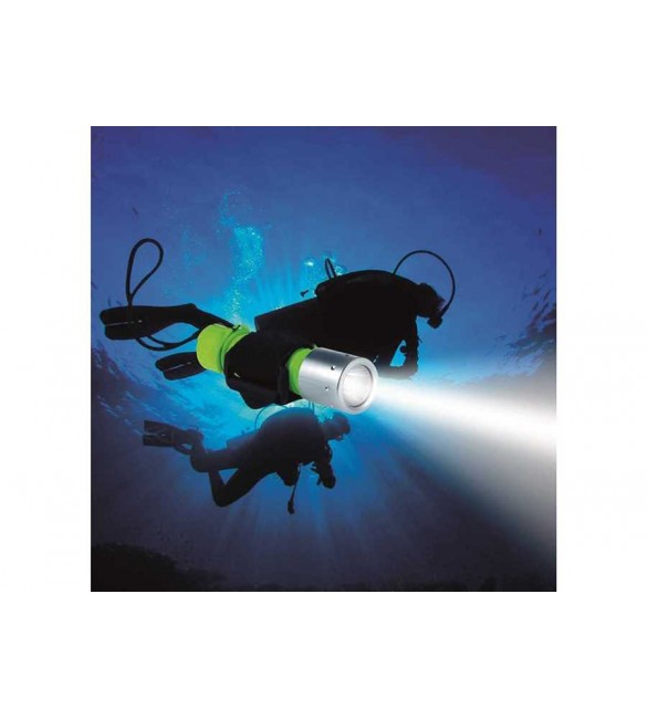 Potente torcia LED professionale totalmente stagna IP68 per uso subacqueo, pesca e diporto.