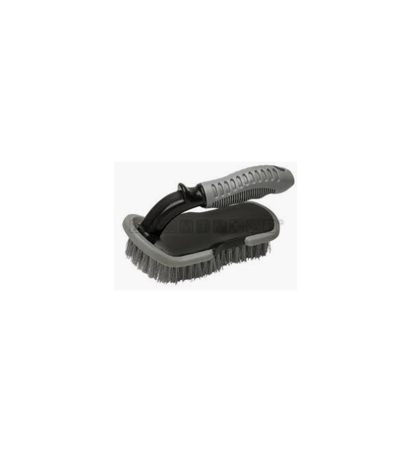 Spazzola con corpo in PVC, bordo in gomma antiurto, fibre a setola dura di alta qualità e manico ergonomico rivestito in gomma.