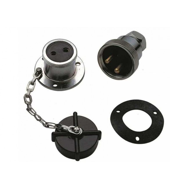Presa e spina impermeabile da ponte per corrente continua max 5A in Ottone Cromato.