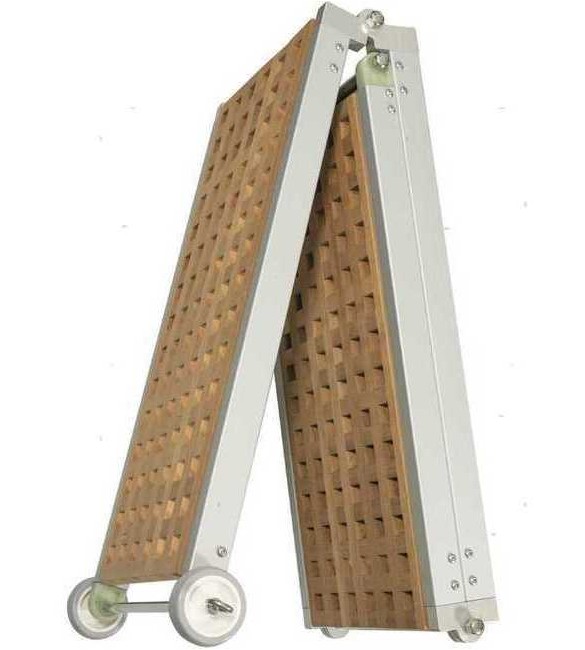 Passerella pieghevole in 3 pezzi con telaio in Alluminio Anodizzato e piano in legno Carabottino.