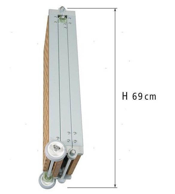 Facilmente stivabile, altezza solo 69 cm quando piegata.