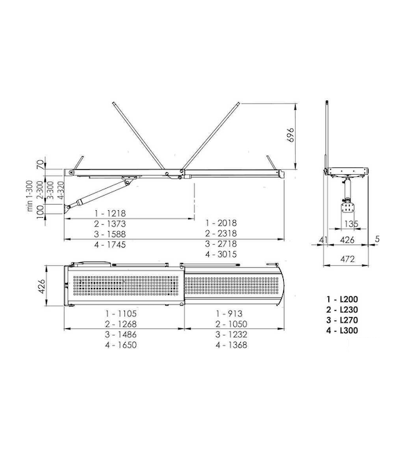 PASSERELLA IDRAULICA SMERALDO CM 230x43 x Portata 200 kg 12V