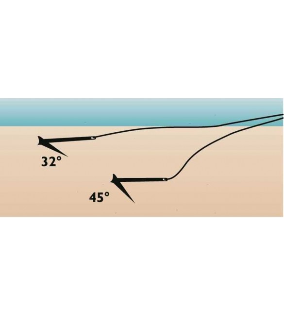Angolo di inclinazione variabile per una migliore tenuta: 32° per ancoraggi normali su sabbia. 45° per ancoraggi su fondali melmosi.