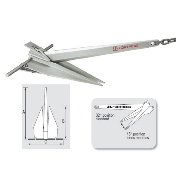 L'ancora Fortress, costruita in Lega rinforzata di Alluminio e Magnesio, pesa meno di un terzo di un' ancora in Acciaio con una tenuta del 100% superiore grazie al suo design.