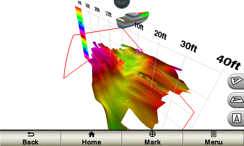 CRONOLOGIA REALVÜ 3-D Scansiona e visualizza in 3D l’intero storico di tutto ciò che è passato sotto l’imbarcazione, permettendo di individuare esattamente la posizione dei pesci, delle strutture e di visualizzare la conformità del fondale.