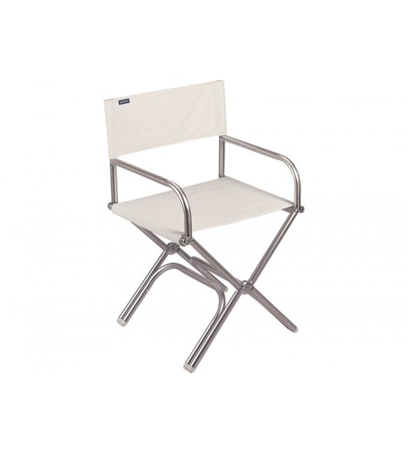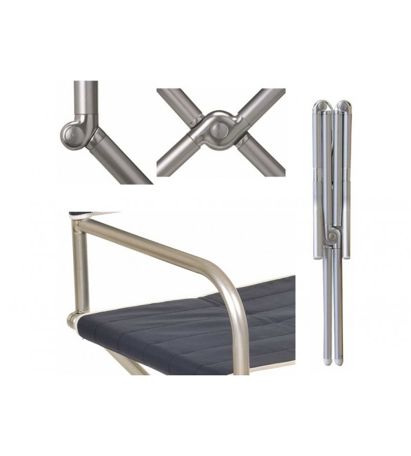 Robusto telaio in Alluminio Anodizzato perfettamente rifinito, inserti antiscivolo. Tessuto marino in Polyfor -