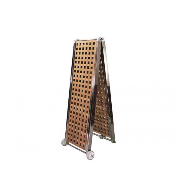 Passerella pieghevole con telaio in Acciaio Inox AISI 316 e piano in legno Carabottino di Iroko.