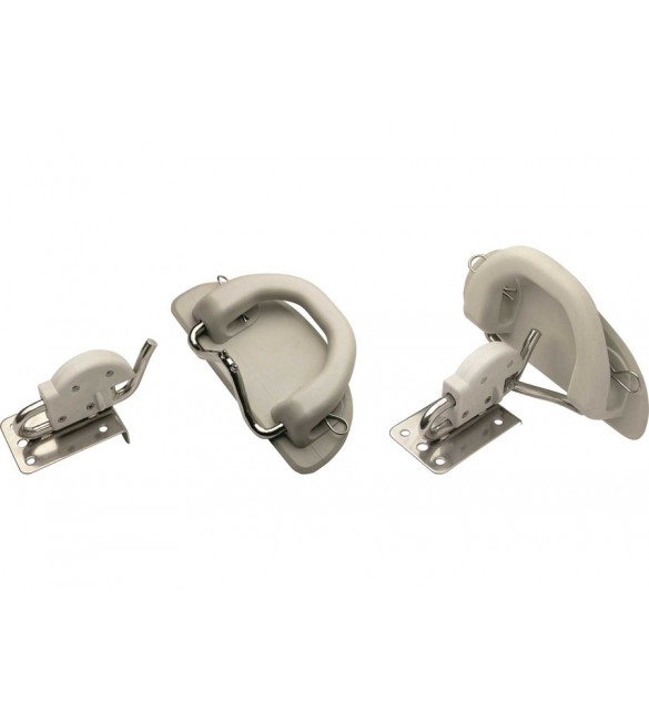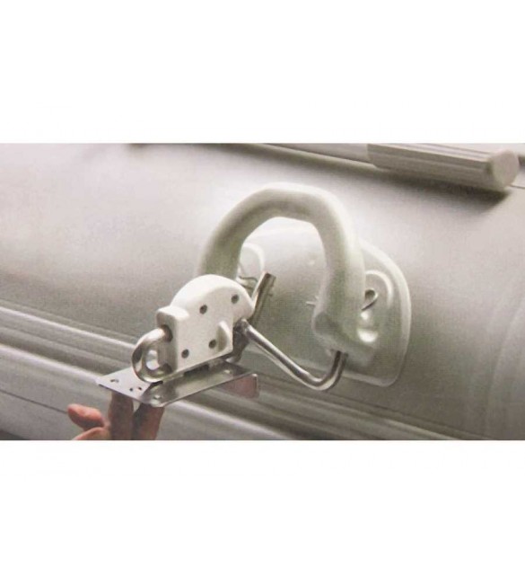 Comprende 2 piastre di aggancio in Acciaio Inox e 2 placche maniglia in Gomma da fissare al gommone.