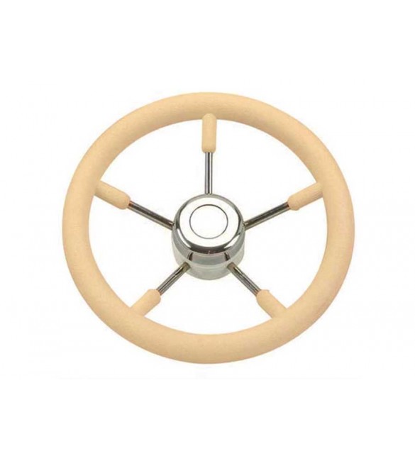 VOLANTE CLASSIC P/STEEL DIAMETRO 350 MM 5 RAZZE ACCIAIO INOX IMPUGNATURE P0LIURETANO COLORE CREMA