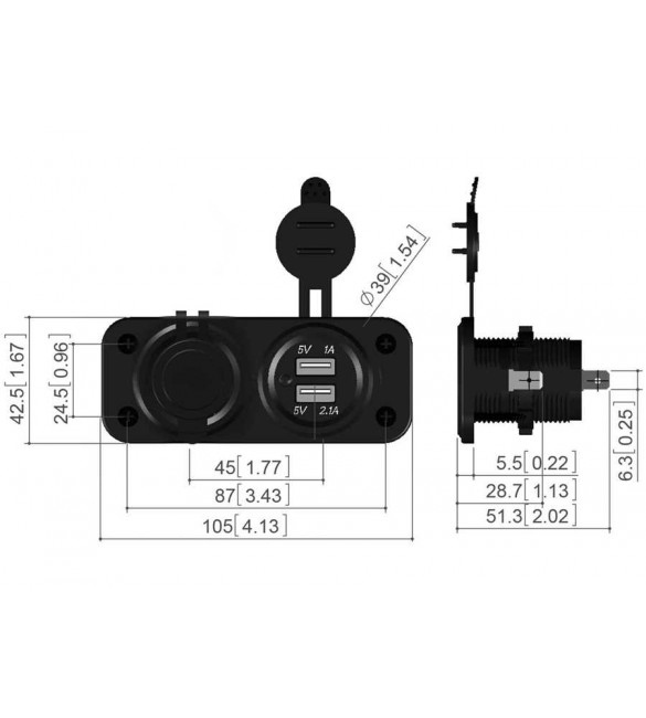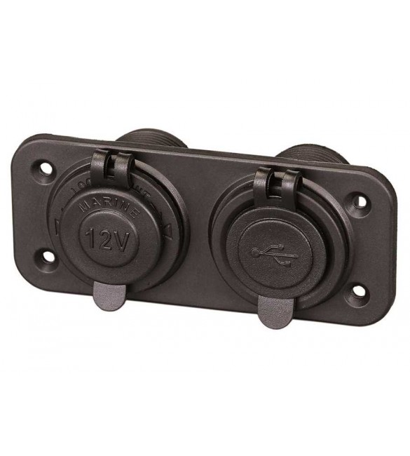 Presa tipo accendino e presa con 2 connessioni USB con cappucci.