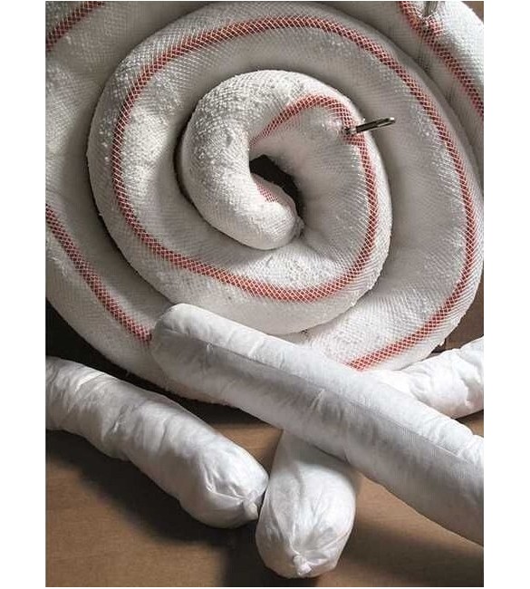 Manicotti in materiale speciale che assorbe olio e idrocarburi ma repelle l'acqua.