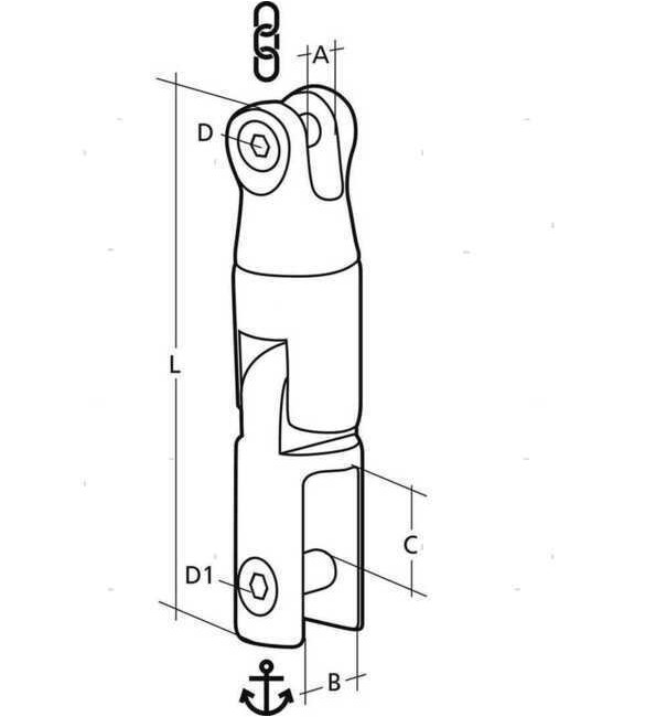 GIUNTO ANCORA GIREVOLE CON SNODO X CATENA 6/8 MM
