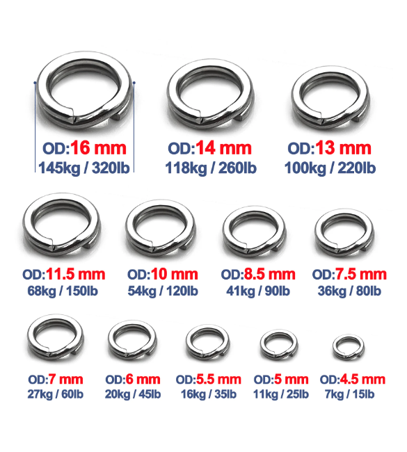 SPLIT RING ZFA MISURA 10 + KG 100 LB 220 CONFEZIONE DA 5 PEZZI