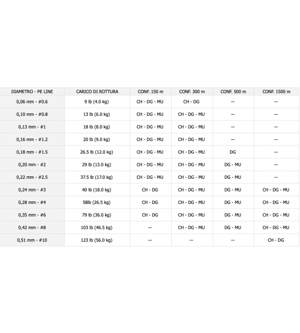 Un progetto così ambizioso non poteva che essere portato avanti da un leader del settore qual’è Daiwa! Il suo nome è J-Braid ed è prodotto in Giappone rispettando i più elevati standard qualitativi in termini di materie prime e trasparenza sui diametri ed i carichi di rottura.