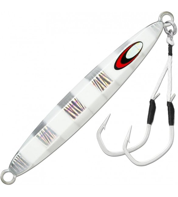 L'artificiale WILLIAMSON SLIDE DANCER 130G (11.5cm/130g) è equipaggiato con un assist hook doppio assemblato con ami VMC misura #4/0 e PE White Line con Carbon Core Assist Line.