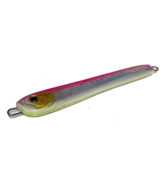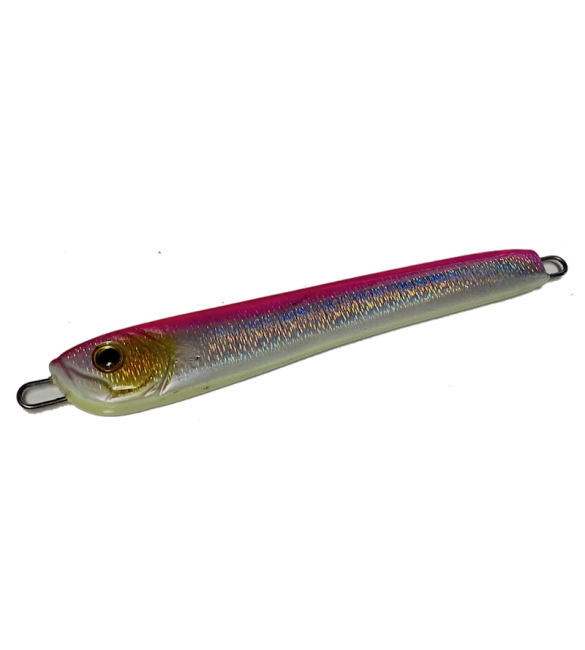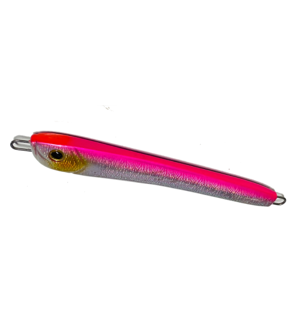 Una tipologia davvero insolita per questo short jig ibrido con gran parte del suo peso concentrata in testa ed in coda. Corpo comunque abbastanza fusiforme con sezione simmetrica semisferica e leggermente prismatica in coda con un invito idrodinamico che ne agevola la discesa. La compattezza ed il peso raccolto lo fanno scendere velocemente, annullando gli effetti negativi del forte scarroccio, facendogli a volte assumere un rollio laterale che incuriosisce i predatori che lo prendono sovente in caduta. È un jig che nel recupero si “sente” sulla cima in misura maggiore di altri artificiali per via della sua forma e della disposizione delle masse. Parrebbe il preferito da dentici e cernie e molti appassionati non riuscirebbero a farne a meno, confermandosi anche nel nostro mediterraneo come uno dei migliori jig. Occhi tridimensionali, disegno delle branchie e differenti finiture olografiche di grande effetto.