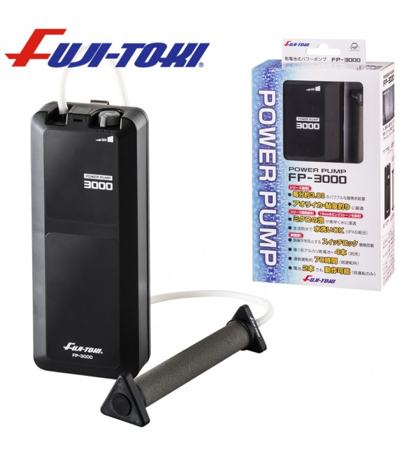 Fuji-Toki FP-3000 è un aeratore ad esca viva di altissima qualità, resistente all'acqua (classe IPX6) con una potenza di 3 L / min e in grado di aerare secchi da esca fino a 80 litri.