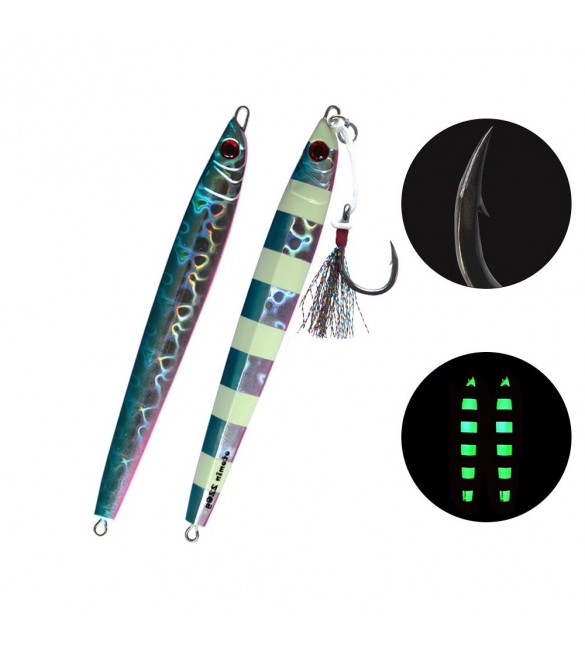 Presenta un corpo allungato con il retro piatto, unendo così classici movimenti del jigging verticale ai nuovi dello jigging lento.